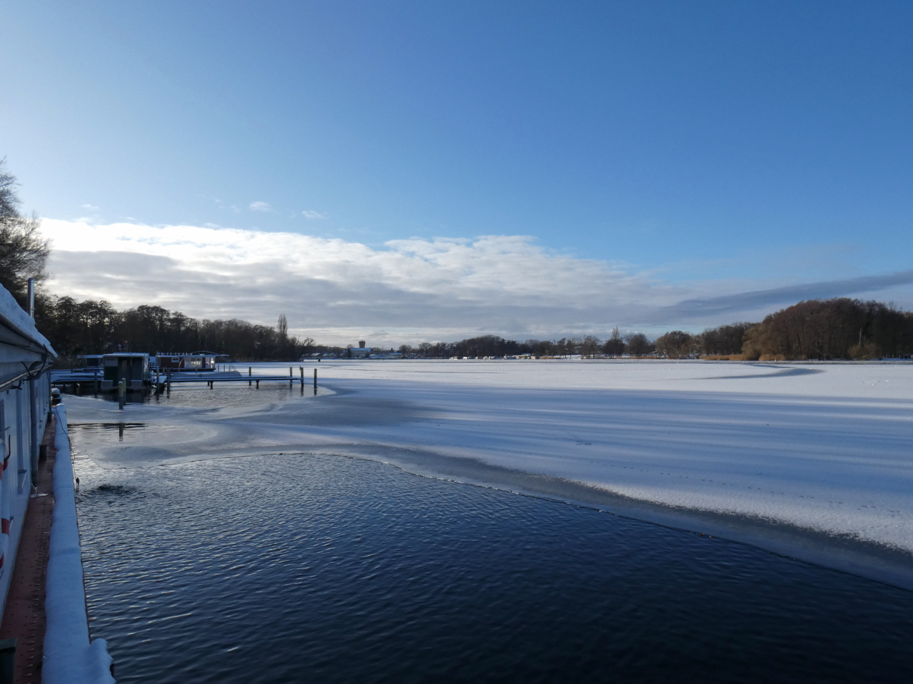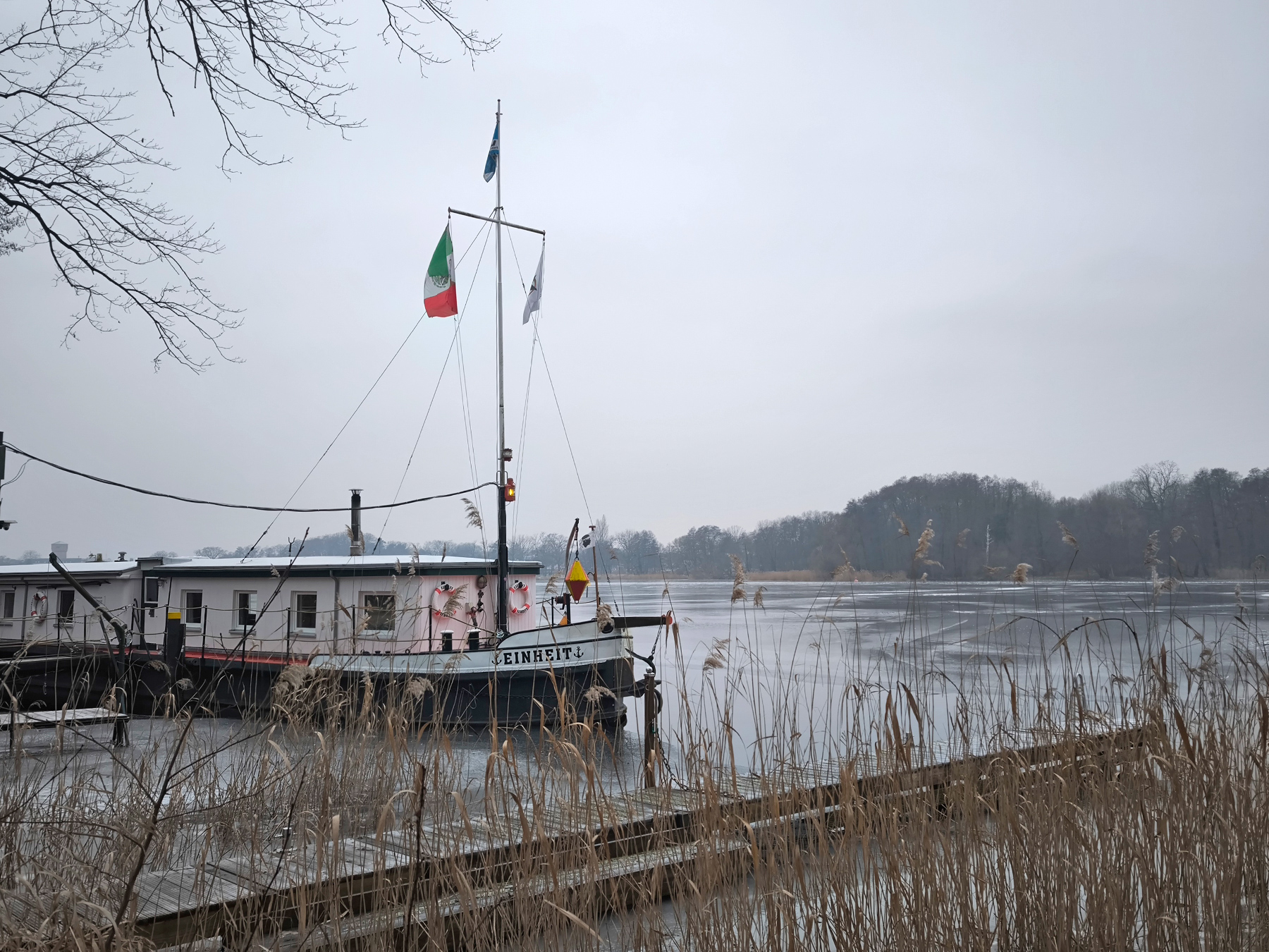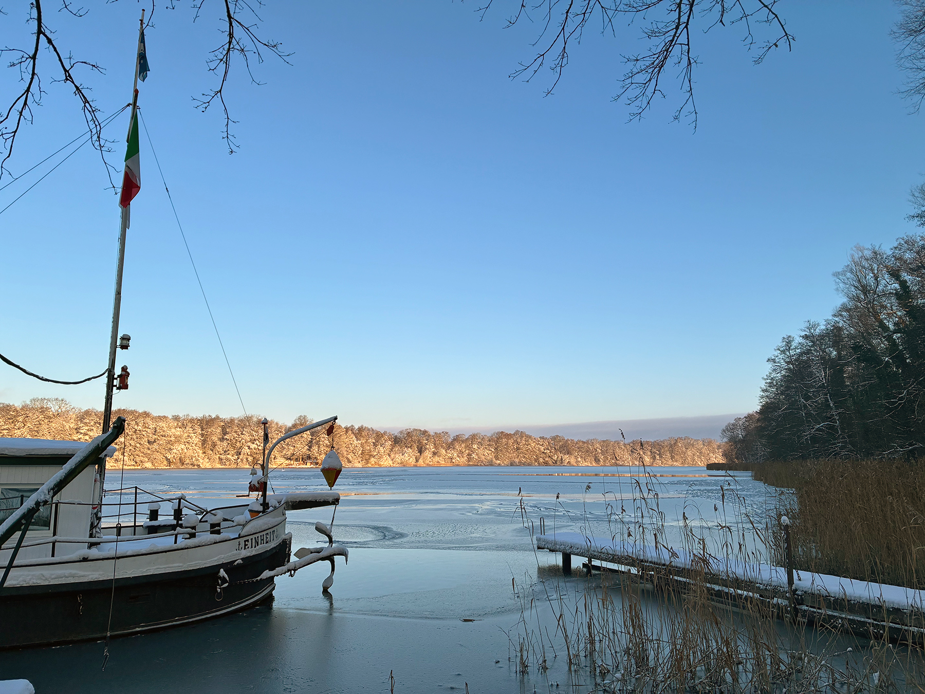 Die uferzone.de macht Pause – freut euch auf neue tägliche Bildergrüße ab April. Dann gibt es wieder den beliebten Blick vom Ostufer des schönen Lehnitzees, dem Liegeplatz des historischen Finowmaßkahns „EINHEIT“, Baujahr 1907, aus.